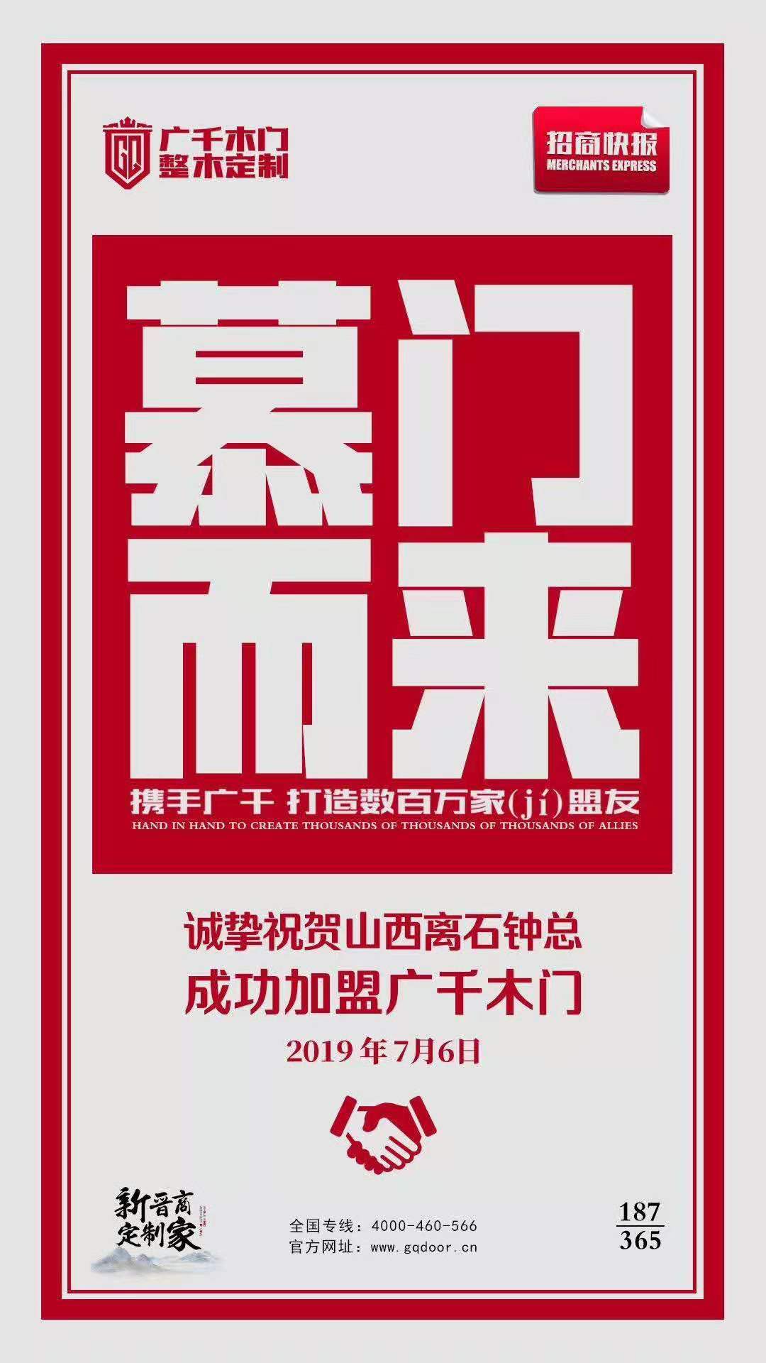 熱烈祝賀山西離石鐘總加盟簽約廣千木門