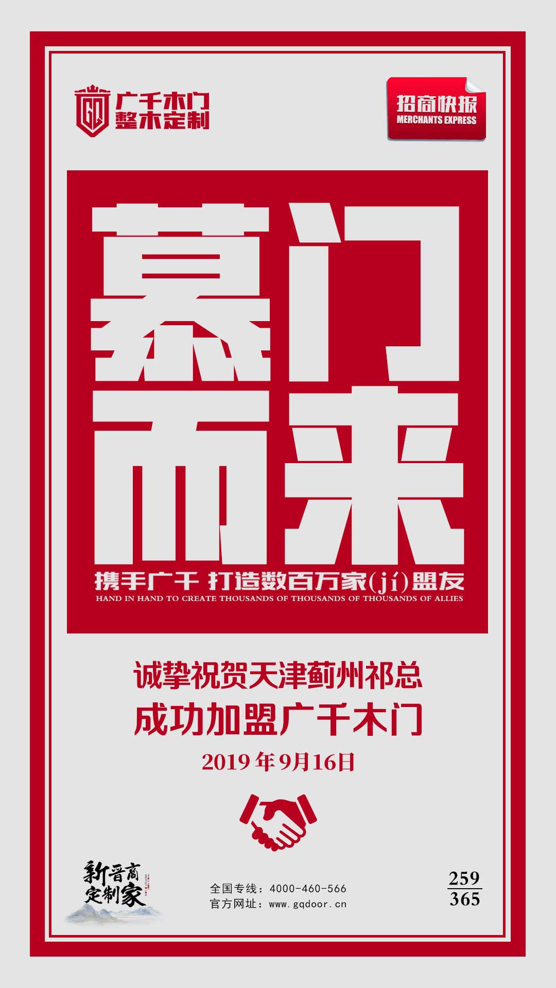 熱烈祝賀天津薊州祁總成功加盟廣千木門