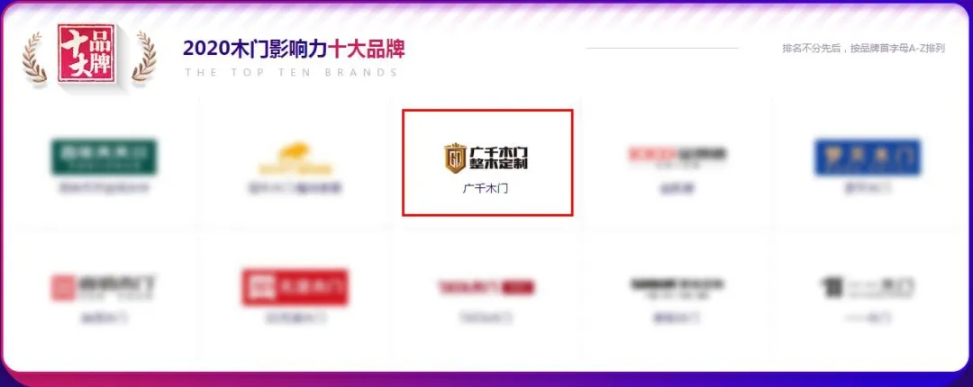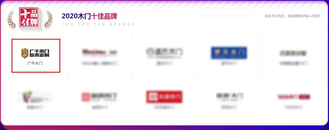 另一份欣喜來自至高榮譽“中國木門十大品牌”,廣千木門從30個行業(yè)內(nèi)領軍木門品牌中脫穎而出,2020年再次斬獲最高殊榮,創(chuàng)造連續(xù)十年登頂金榜的奇跡,這是對廣千木門高端品質(zhì)與匠心服務最好的嘉譽!同時也激勵著我們不斷拼搏,創(chuàng)木門行業(yè)新標桿。