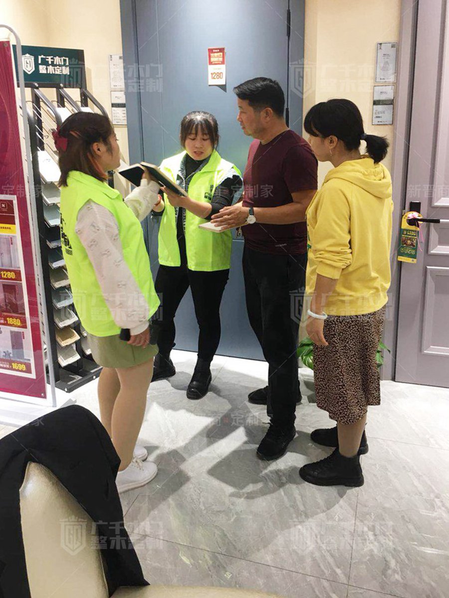 試營(yíng)業(yè)期間,我們的服務(wù)也絕不打折!一個(gè)好的品牌離不開背后強(qiáng)大的團(tuán)隊(duì)支撐。廣千木門整木定制的每一位家人用優(yōu)質(zhì)的服務(wù)打動(dòng)消費(fèi)者,實(shí)現(xiàn)消費(fèi)者對(duì)美好定制生活的追求向往。