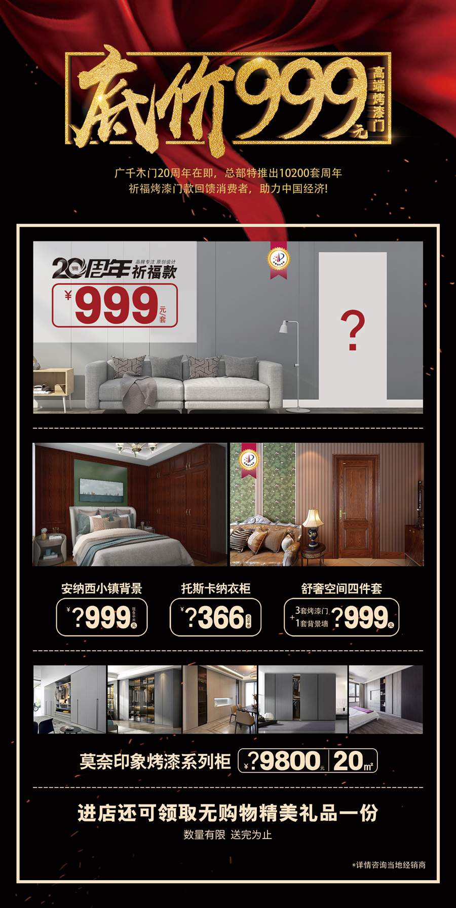 廣千木門整木定制品牌全系產(chǎn)品超值來襲,999周年祈福門款限量先到先得!每一件產(chǎn)品都是匠心之作。超多實(shí)惠,正燃爆全國。后疫情時代,廣千木門整木定制穩(wěn)中有進(jìn),面對整木定制行業(yè)的漸漸復(fù)蘇,廣千木門將持續(xù)擴(kuò)大市場,助力經(jīng)濟(jì)。20周年綻放時刻,驚艷與您相見。
