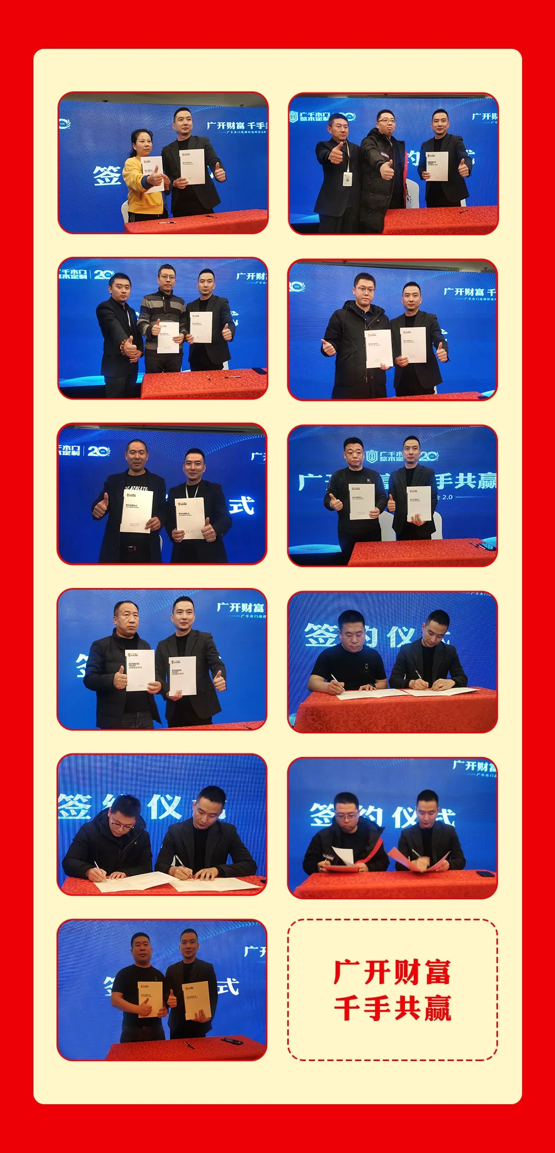 感謝新家人的信任和選擇!未來,廣千將以務(wù)實(shí)的精神發(fā)力終端,用優(yōu)質(zhì)的高端產(chǎn)品、優(yōu)秀的團(tuán)隊(duì)、獨(dú)特的運(yùn)營模式和新型營銷模式,助力“新商”變“大商”,廣千期待與所有志同道合的伙伴“廣開財(cái)富·千手共贏”!
