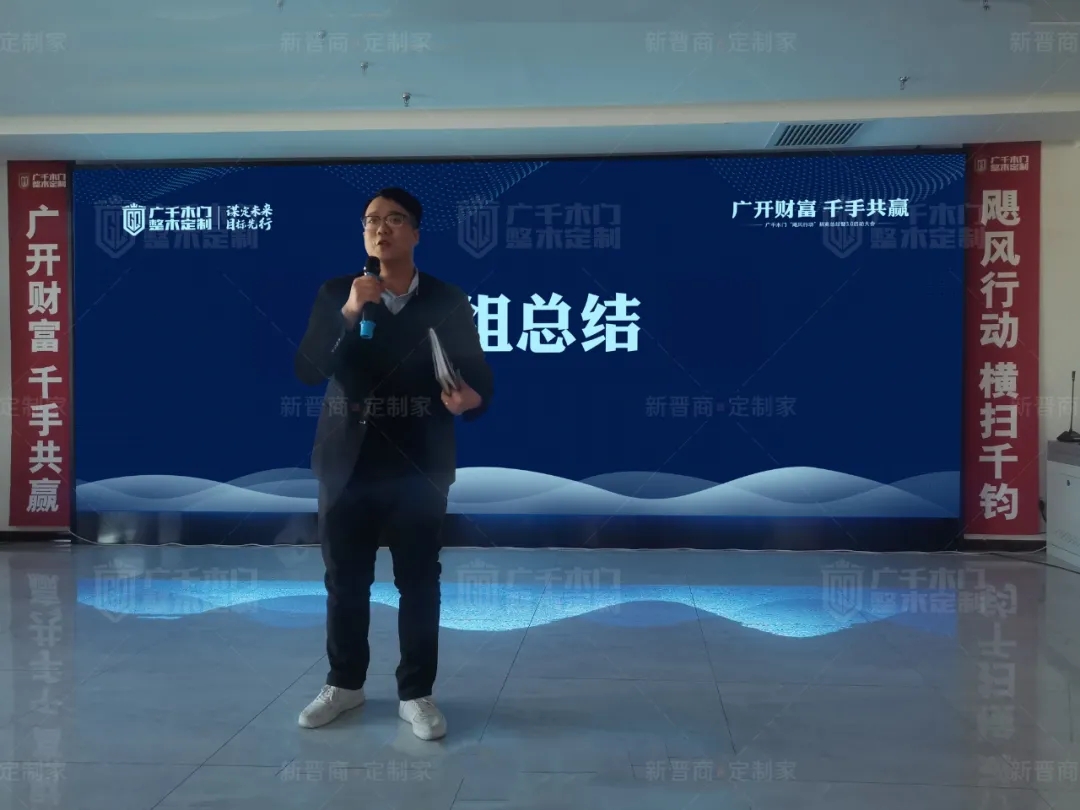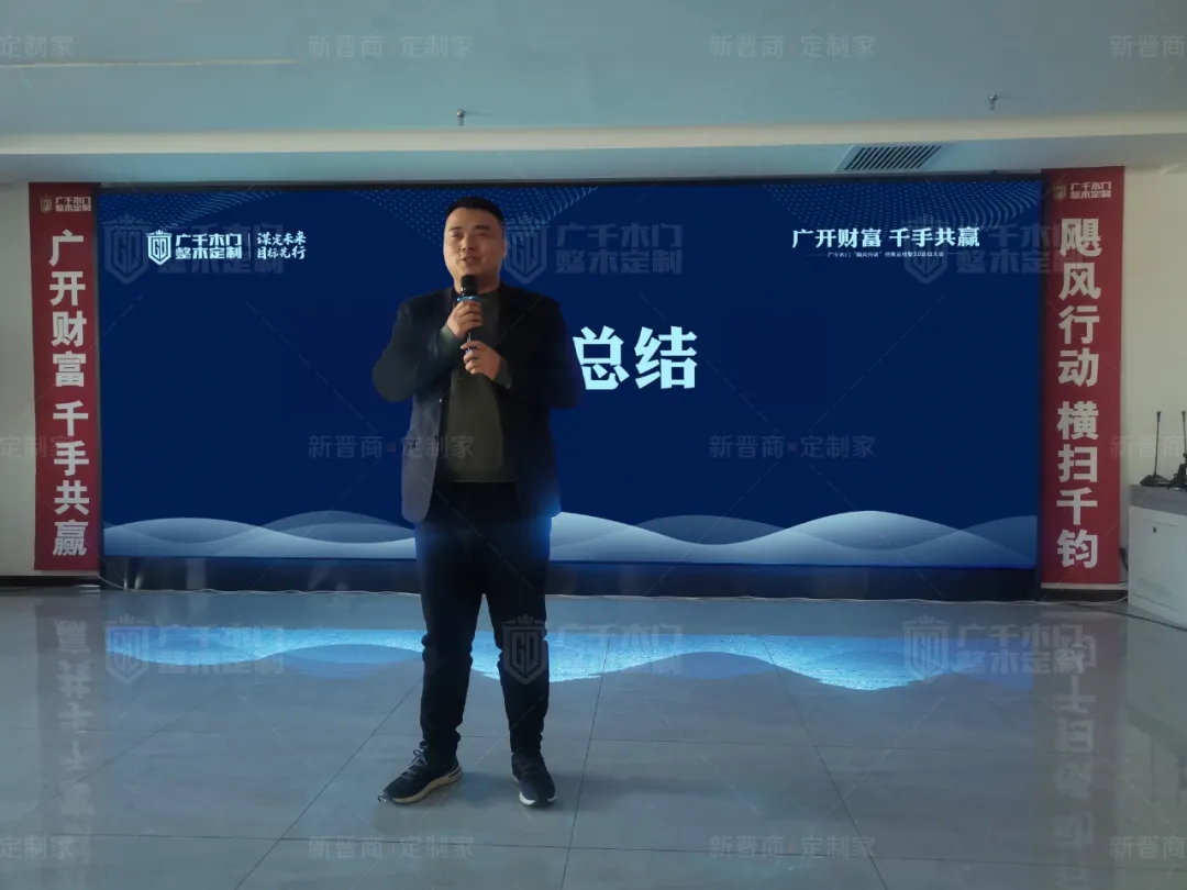 有目標才有結果!廣千“颶風行動”項目負責人薛總為大家詳細解讀第三場招商峰會的招商目標,并對會議排期等板塊內(nèi)容做出合理安排。同時他對即將啟程的招商戰(zhàn)士們送上祝福,希望通過大家的努力,廣千木門可以乘風破浪,勇敢向前,開拓新局面,奏響新凱歌!