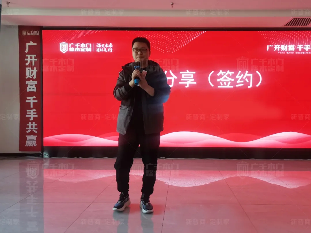 會議正式開始,廣千木門營銷中心總經(jīng)理首先登臺致辭,他精神飽滿,感慨萬千!張總復盤了2020年后兩個月廣千的招商情況,并充分肯定了大家取得的驕人成績。面對2021年的宏偉開篇,他鼓勵大家昂揚斗志,再接再厲,做出更輝煌的成績,齊心協(xié)力實現(xiàn)企業(yè)的長效發(fā)展,圓滿完成2021年的招商大計。