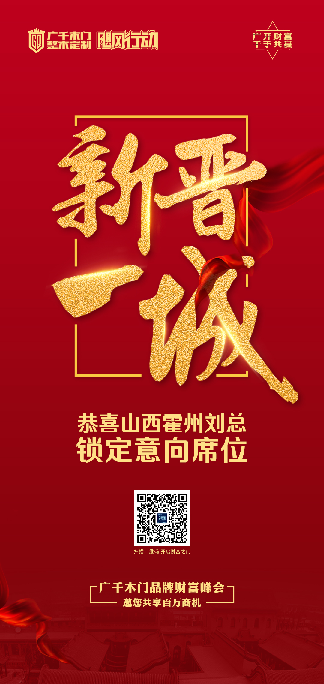 以匠心鑄精品,以質(zhì)量樹品牌。在此預(yù)祝廣千霍州旗艦店財運亨通,同時廣千木門整木定制面向全國空白區(qū)域進(jìn)行整木定制招商、整木定制加盟,誠邀有經(jīng)驗者同心協(xié)力、共創(chuàng)未來!
