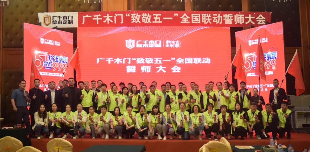 金戈鐵馬聞?wù)鞴模粻幊⑿鲁獭?strong>木門品牌廣千木門精英培訓(xùn)暨“致敬五一”全國聯(lián)動(dòng)誓師大會(huì)圓滿落幕。整齊劃一、躊躇滿志、蓄勢待發(fā),為實(shí)現(xiàn)五一大促新突破,堅(jiān)定信念,團(tuán)結(jié)互助,全力以赴,迎難而上;為同一個(gè)夢想,匯聚一堂,戮力同心,厲兵秣馬,再續(xù)輝煌!