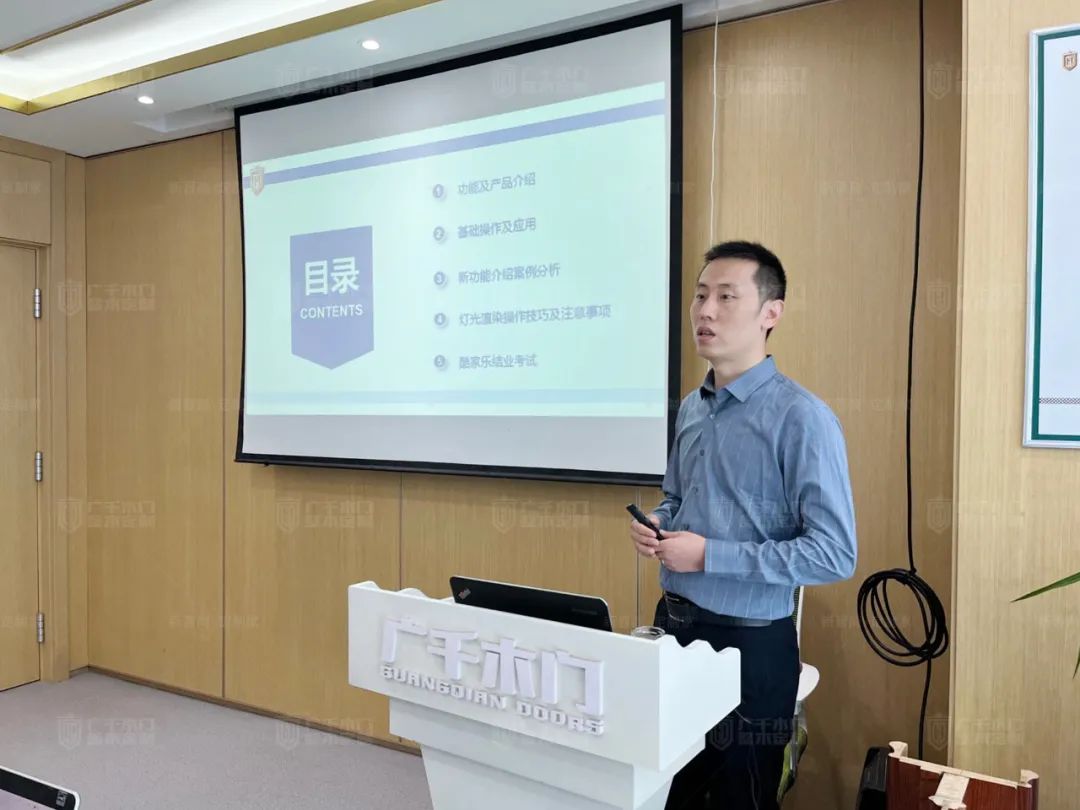 申總從做整木定制設(shè)計(jì)師的四大原則入手,穿插實(shí)際案例來講解作為一名專業(yè)設(shè)計(jì)師的標(biāo)準(zhǔn),不斷細(xì)化在設(shè)計(jì)過程中可能出現(xiàn)的問題。從設(shè)計(jì)風(fēng)格與廣千產(chǎn)品應(yīng)用到標(biāo)準(zhǔn)圖紙規(guī)范,申總帶領(lǐng)學(xué)員們一一做了集中答疑和復(fù)盤,讓參與此次培訓(xùn)的每一位學(xué)員都能全方位了解廣千的產(chǎn)品體系和設(shè)計(jì)標(biāo)準(zhǔn)。
