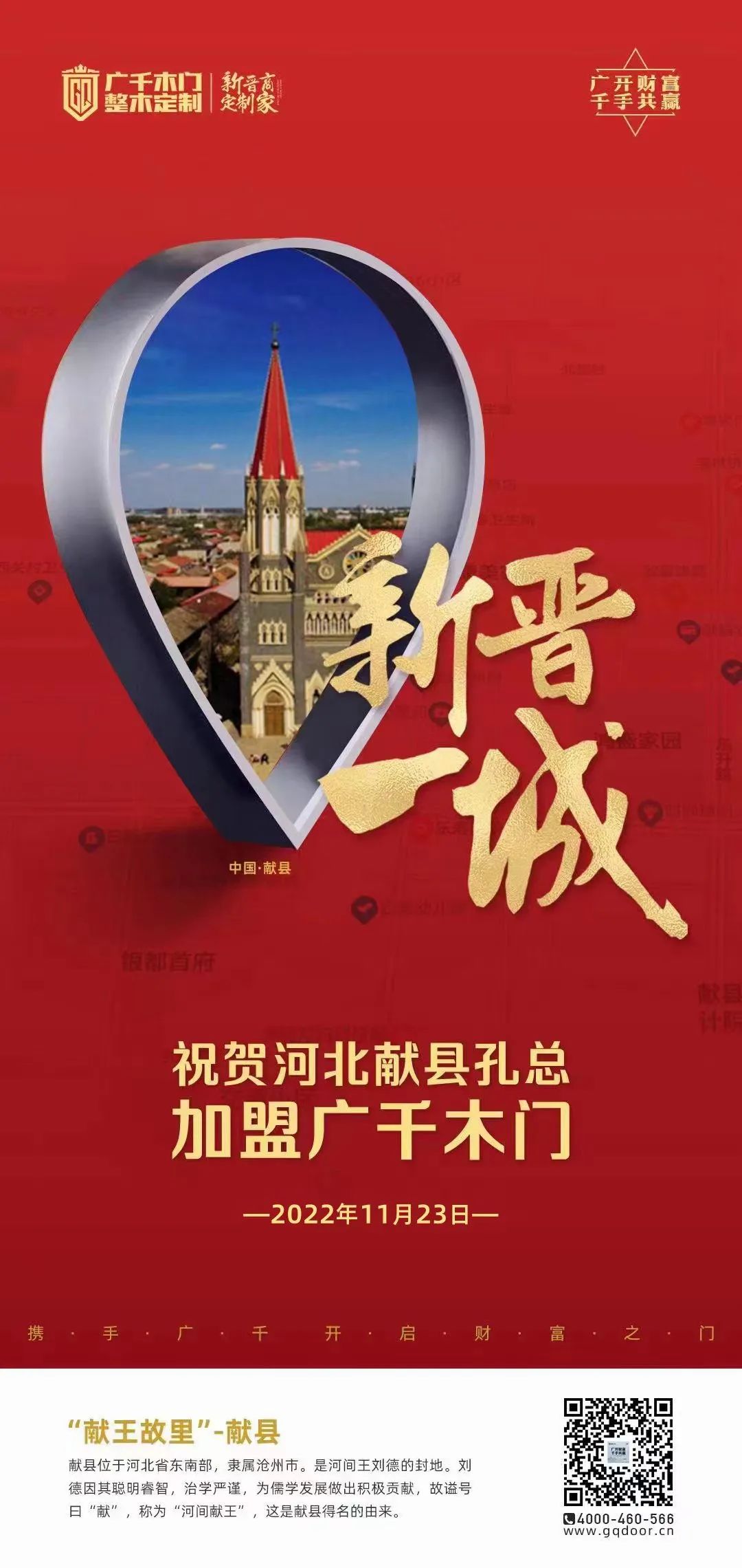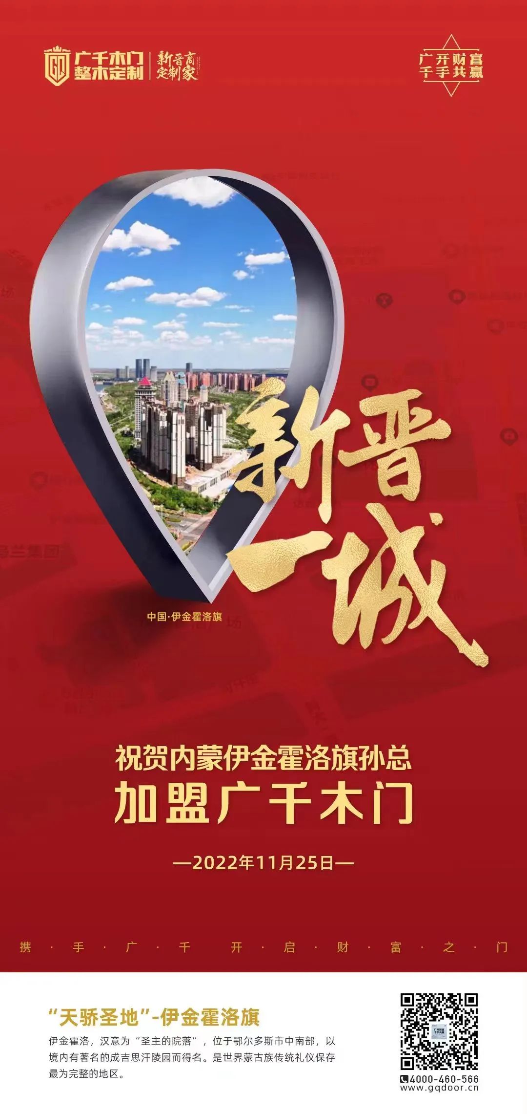 11月,雖有不少地區(qū)受大環(huán)境的影響,無法正常運行,但廣千人依然創(chuàng)造出卓然戰(zhàn)績,為廣千再添5城!大力擴充終端陣營,是廣千2022“千城千店”戰(zhàn)略部署的進一步實施,有助于中國木門十大品牌廣千木門“大華北”戰(zhàn)略目標的踐行落地!期待在12月,能有更多有識之士加入廣千木門,攜手共創(chuàng)更為廣大的整木定制藍圖!