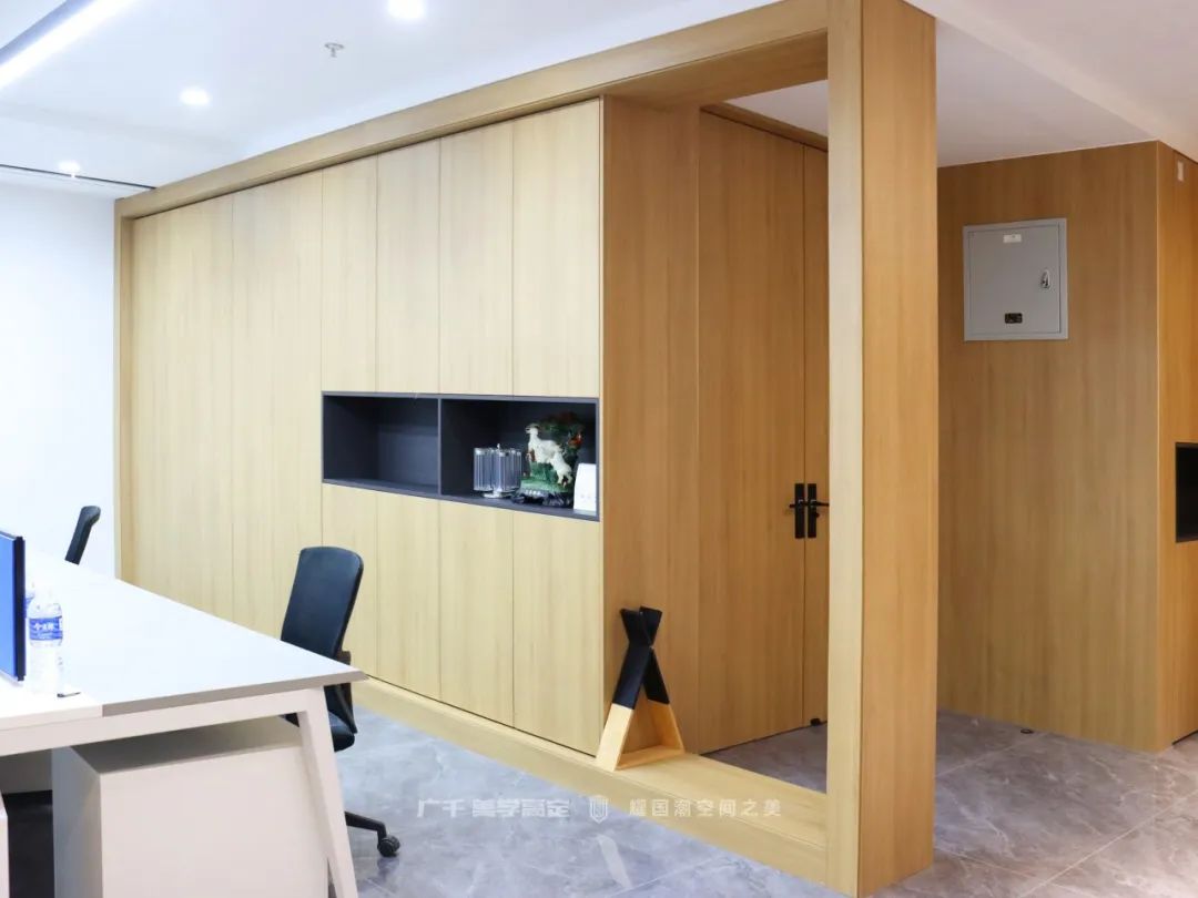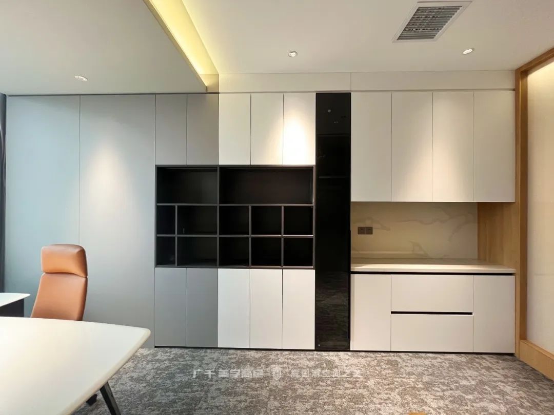 茶水區(qū)的布局延續(xù)了整木定制十大品牌廣千思摩設(shè)計(jì)“簡(jiǎn)潔高效”的設(shè)計(jì)理念,在滿足功能的同時(shí),讓空間利用更加合理。黑與白的經(jīng)典搭配,打破了單一色塊帶來(lái)的沉悶。停下繁忙的腳步,小憩片刻,品一杯醇香的咖啡為疲憊的身體充電,也不失為一種小確幸~