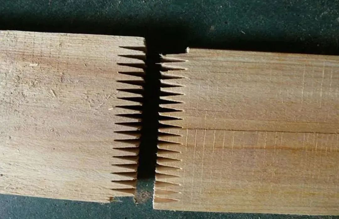 有些短徑樹(shù)種或質(zhì)地太軟的速生材(如橡膠木、松木、杉木),切出來(lái)的鋸材硬度和寬度都不夠,那么如何處理成為人們所用的板材呢?其實(shí)很簡(jiǎn)單,將木材切成小木條,并將其開(kāi)榫,然后將這些小木條齒接成大木板,這就成了常見(jiàn)的集成材,指接板就此誕生。它的出現(xiàn),克服了低端實(shí)木板材易翹曲、變形、開(kāi)裂的特性,但其仍有不足之處,比如其物理性能仍差強(qiáng)人意,美觀性也稍有欠缺。