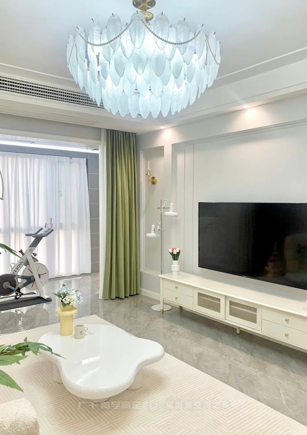 整個(gè)設(shè)計(jì)選擇用翠綠等春天的標(biāo)志性色彩的裝飾來(lái)呼應(yīng)整體設(shè)計(jì),春天的生機(jī)感呼之欲出。在悠閑午后,閑臥在沙發(fā)上,窗外春風(fēng)蕩漾,室內(nèi)光影不斷交替變換,輕松找回生活的松弛感。