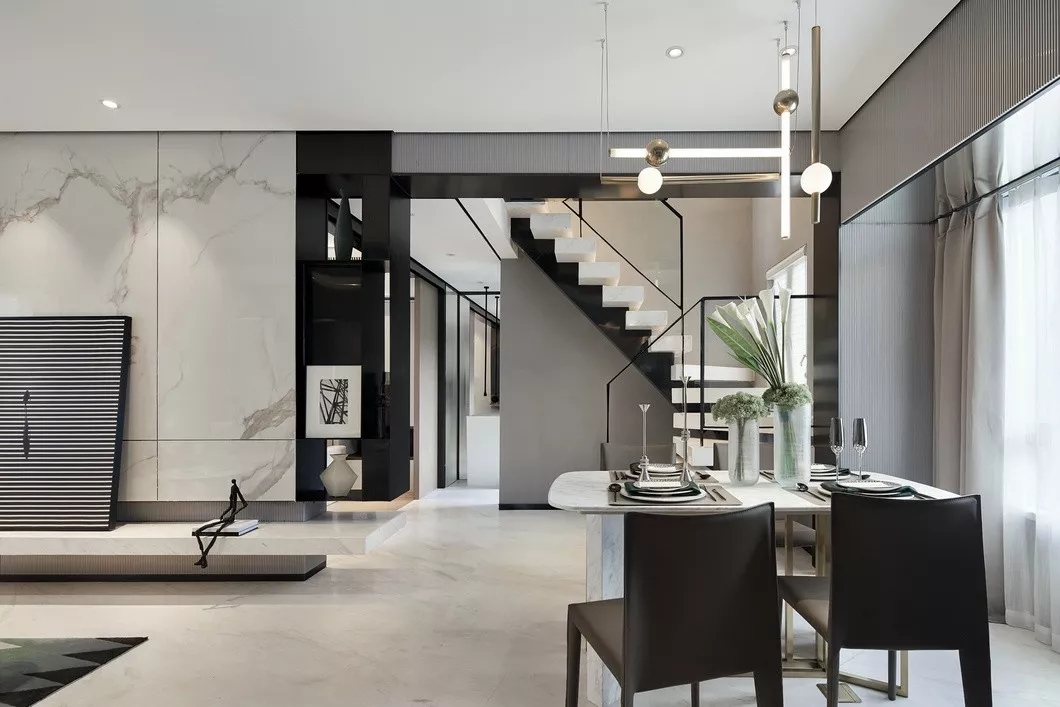 “極簡”并非簡單的斷舍離,而是心無旁騖地關(guān)注材料,將其特性無限純化,整體保持了現(xiàn)代極簡風(fēng)格,同時(shí)最大程度釋放空間體量,將空間利用最大化,融入功能,簡而不減。