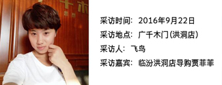 采訪時間:2016年9月22日;采訪地點:廣千木門(洪洞店);采訪人:飛鳥;采訪嘉賓:臨汾洪洞店導購賈菲菲。 ...