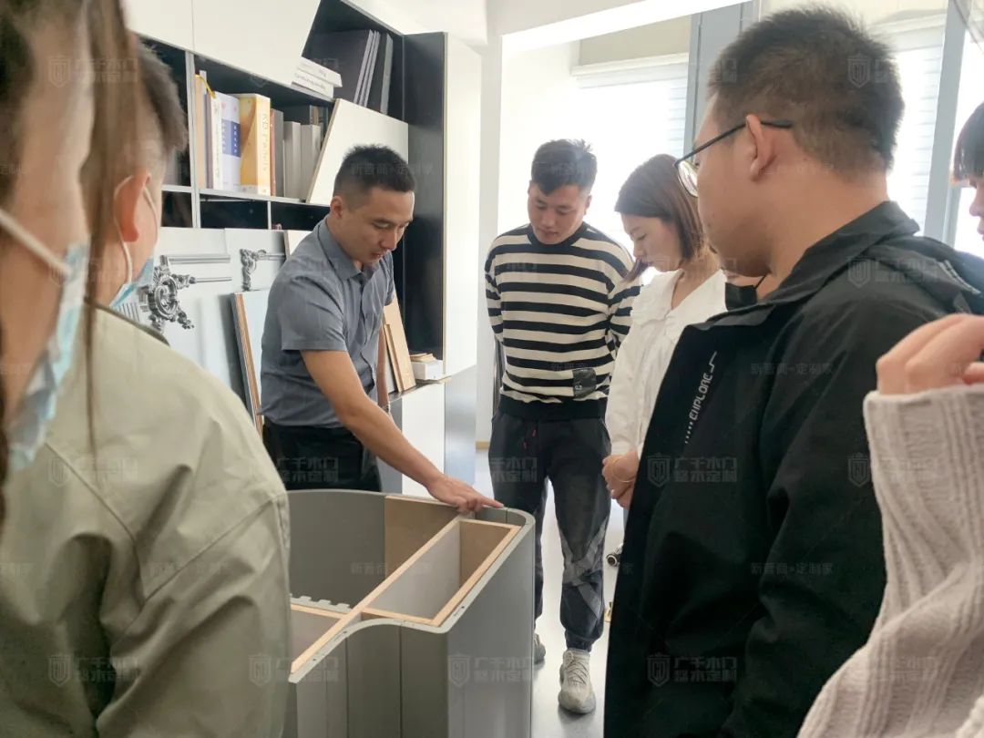 想要成為一名優(yōu)秀的設(shè)計(jì)師,必須深入了解產(chǎn)品。在導(dǎo)師的帶領(lǐng)下,學(xué)員們零距離品鑒每一件整木定制產(chǎn)品背后的層層工藝,更加懂得了“匠心智造”的產(chǎn)品內(nèi)涵,也看到了廣千品牌背后不俗的企業(yè)實(shí)力!