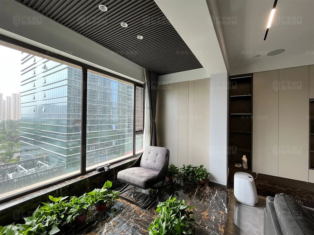 讓心靈逃離喧囂之所,身體回歸自然之處。一把躺椅,一杯香茗,在某個(gè)閑睱的午后,讀一本喜歡的書(shū),充實(shí)自己的精神世界。綠色的植物為空間增添活力,隱形格柵門(mén)的設(shè)計(jì)兼顧了美觀性和實(shí)用性,與整體空間完美融合。于這方寸之間,盡享舒適與愜意。