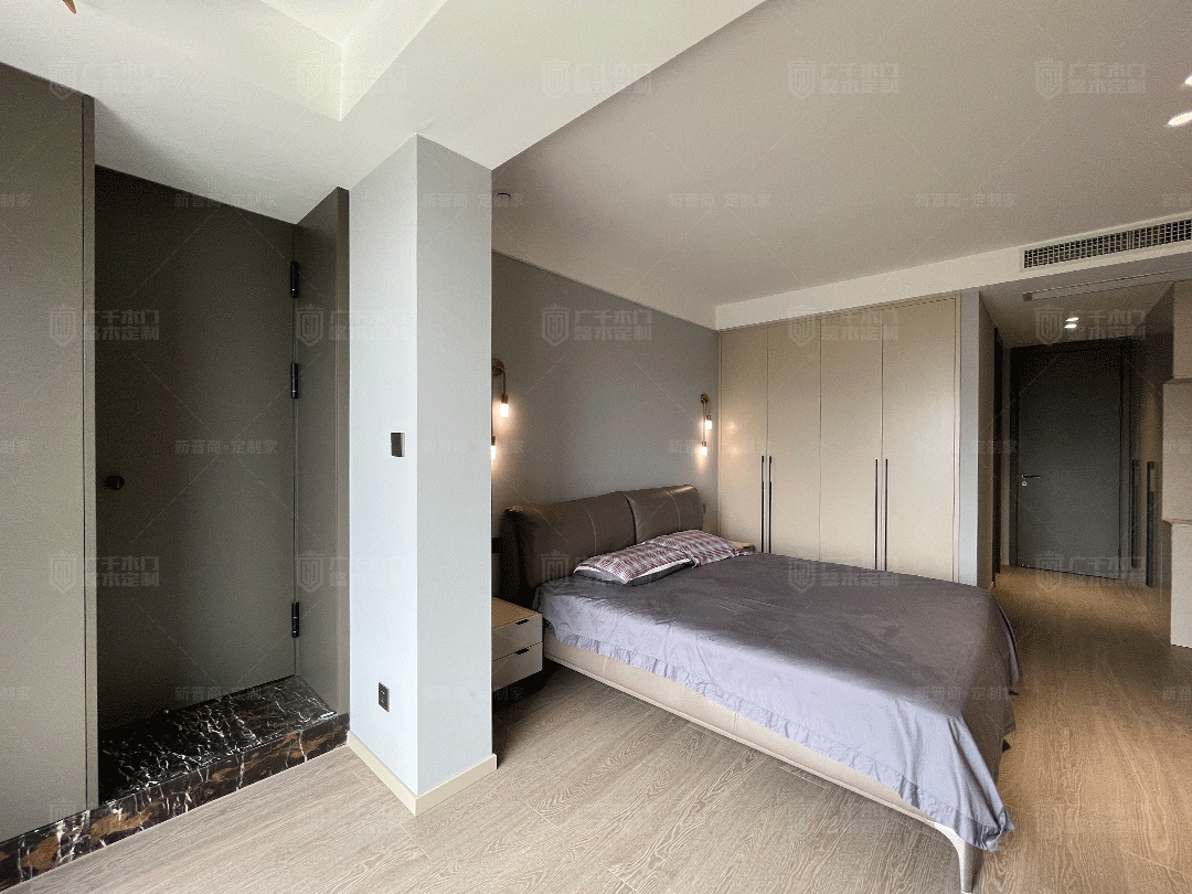 簡(jiǎn)至極致,方能呈現(xiàn)空間質(zhì)感。整個(gè)設(shè)計(jì)杜絕了浮夸綺靡,將不必要的元素刪減,打造出舒適溫馨的休憩空間。柔和的燈光搭配高級(jí)灰的墻體和米白色的柜體,呈現(xiàn)出低調(diào)內(nèi)斂的奢華之感。簡(jiǎn)潔外表下,蘊(yùn)含著整木定制十大品牌廣千思摩設(shè)計(jì)對(duì)時(shí)尚的獨(dú)到見(jiàn)解。