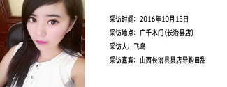 采訪時間:2016年9月22日;采訪地點:廣千木門(洪洞店);采訪人:飛鳥;采訪嘉賓:臨汾洪洞店導購賈菲菲。 ...